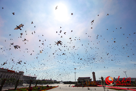 7萬只和平鴿、7萬個(gè)氣球飛向天際,閱兵式圓滿結(jié)束。網(wǎng)友許愿國(guó)家富強(qiáng)繁榮、世界和平永存。