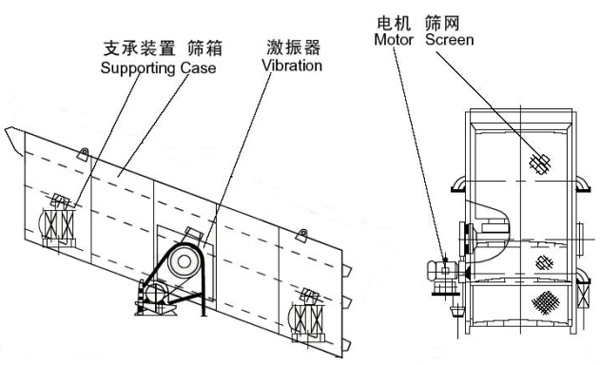 2、篩子橫梁與篩箱采用高強度螺栓聯(lián)接,結(jié)構(gòu)簡單,維修方便快捷;